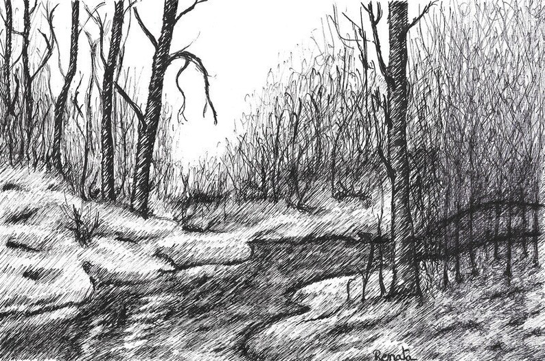 Art Gift Forest Landscape Nature Art Drawing For Dad Living Room Art Housewarming Gift For The Family Handmade Ink Drawing