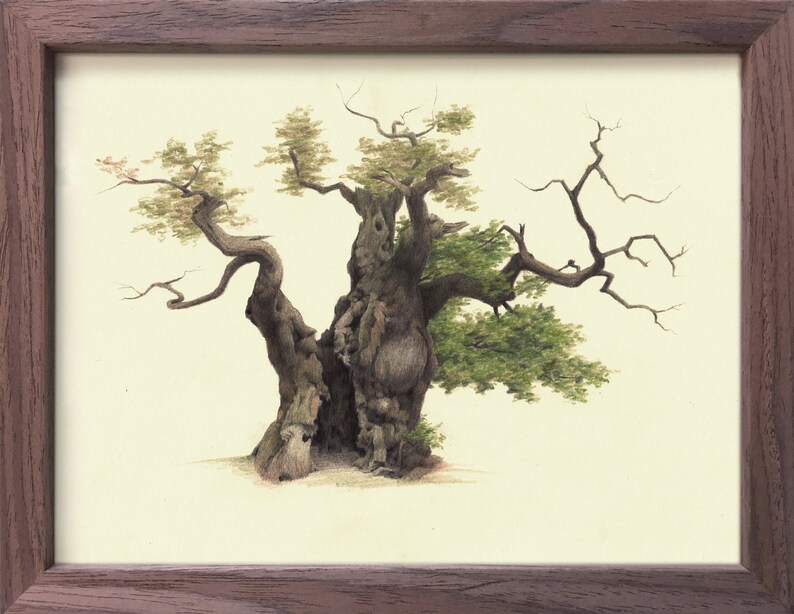 Old Oak Drawing Handmade Realistic Drawing Nature Art Crayons Oak Tree