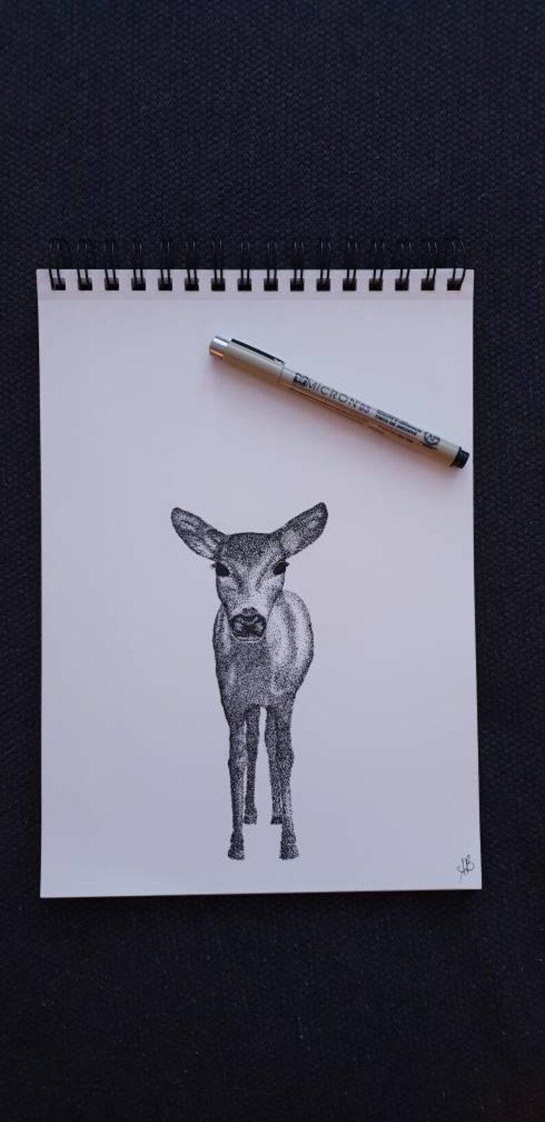 Nature Abstract Art Handmade Drawing With Ink Using Pointillism Deer