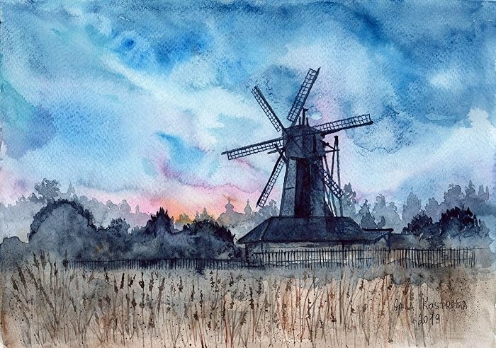 Amazon Com Landscape With A Mill Original Watercolor Nature