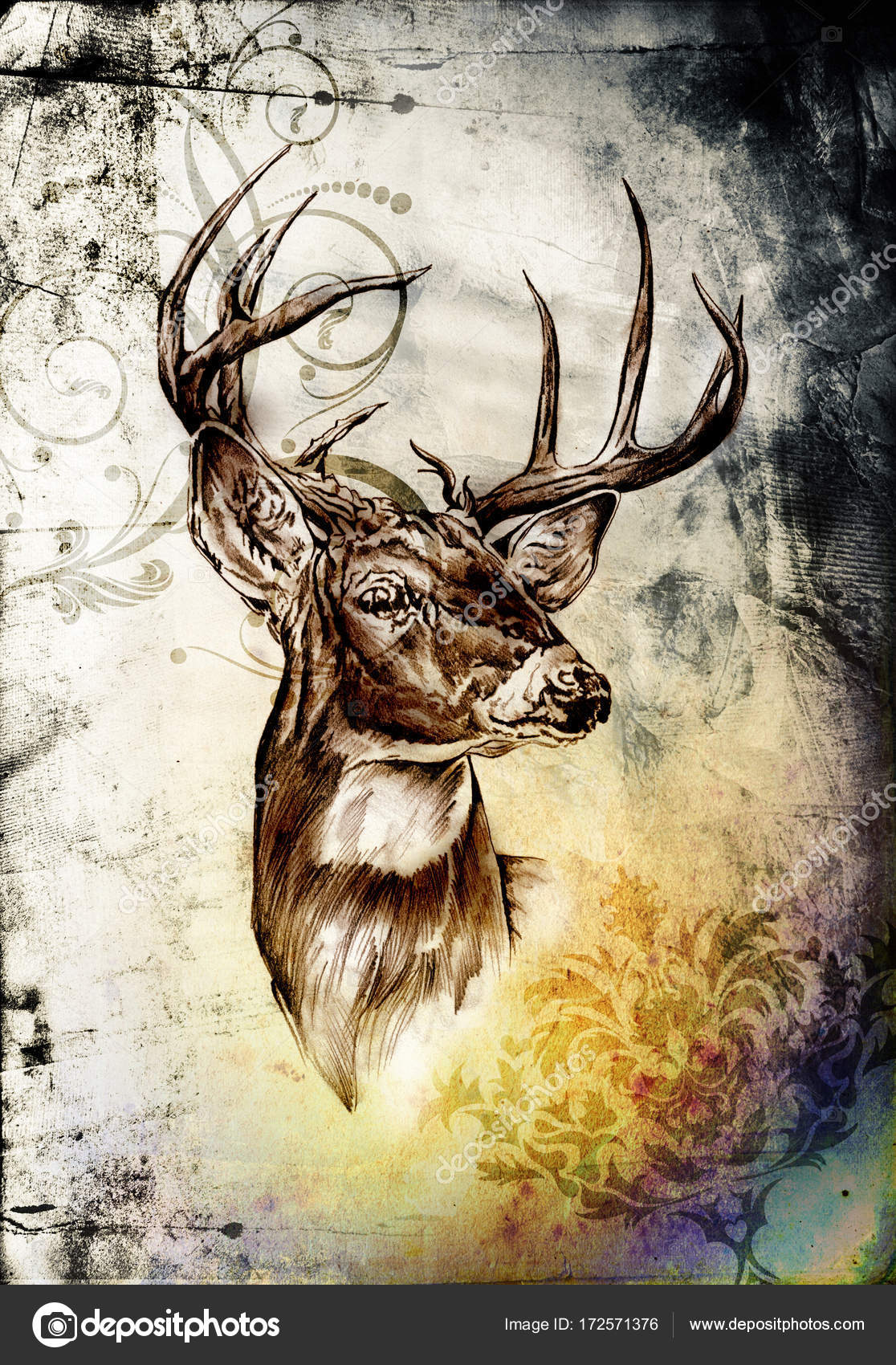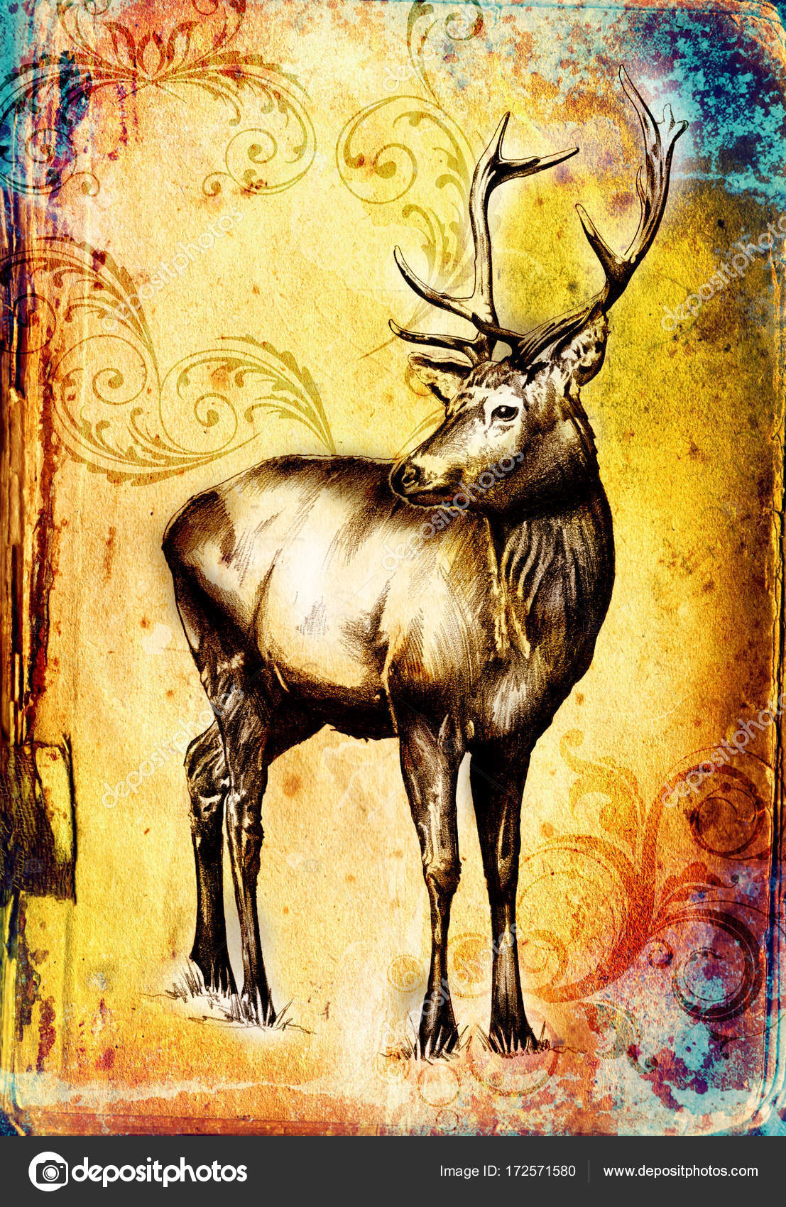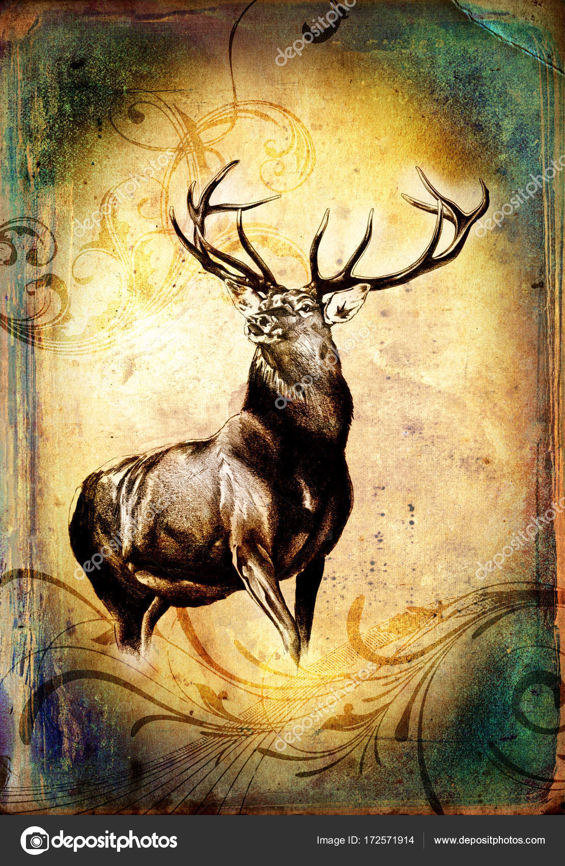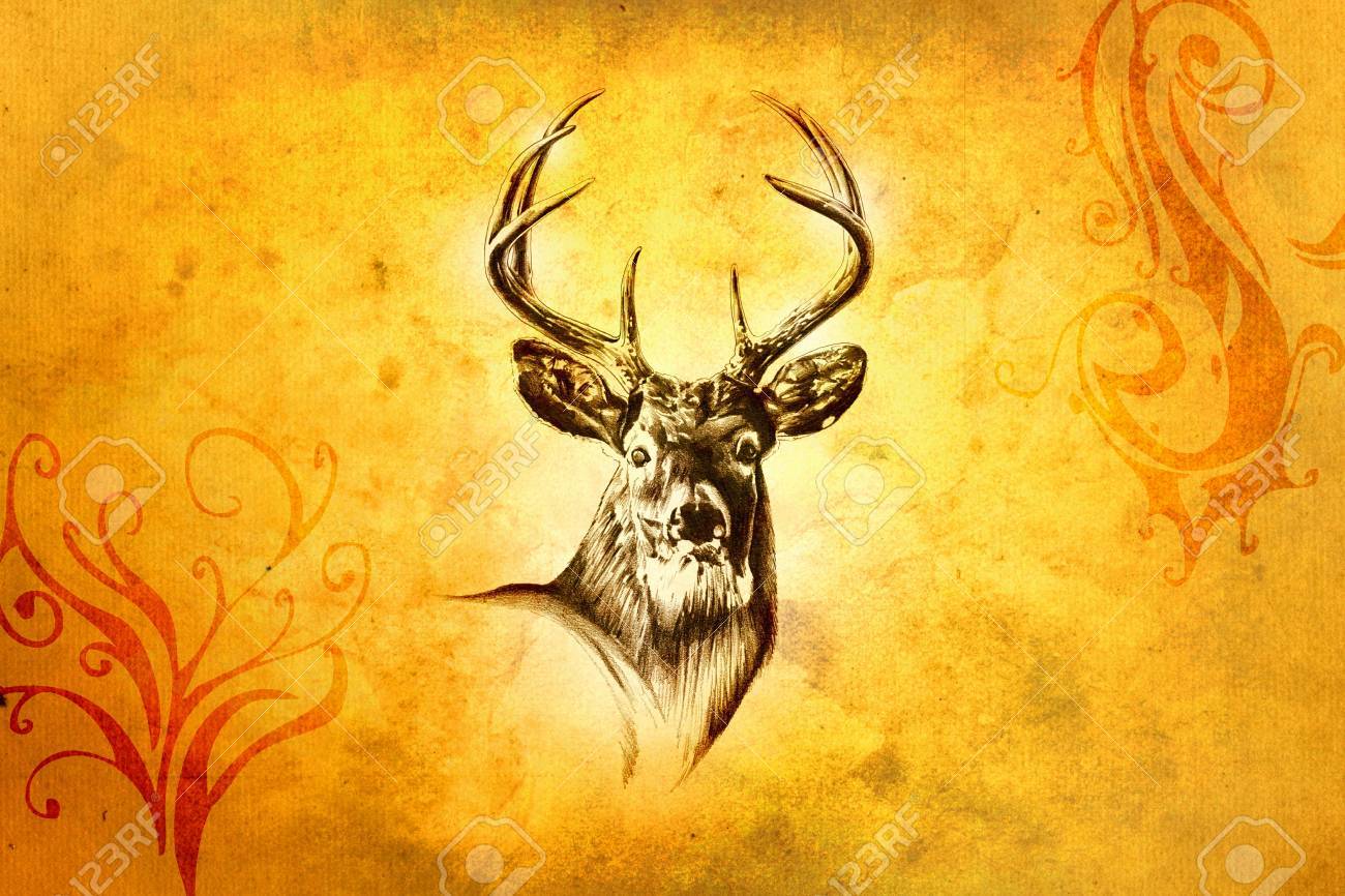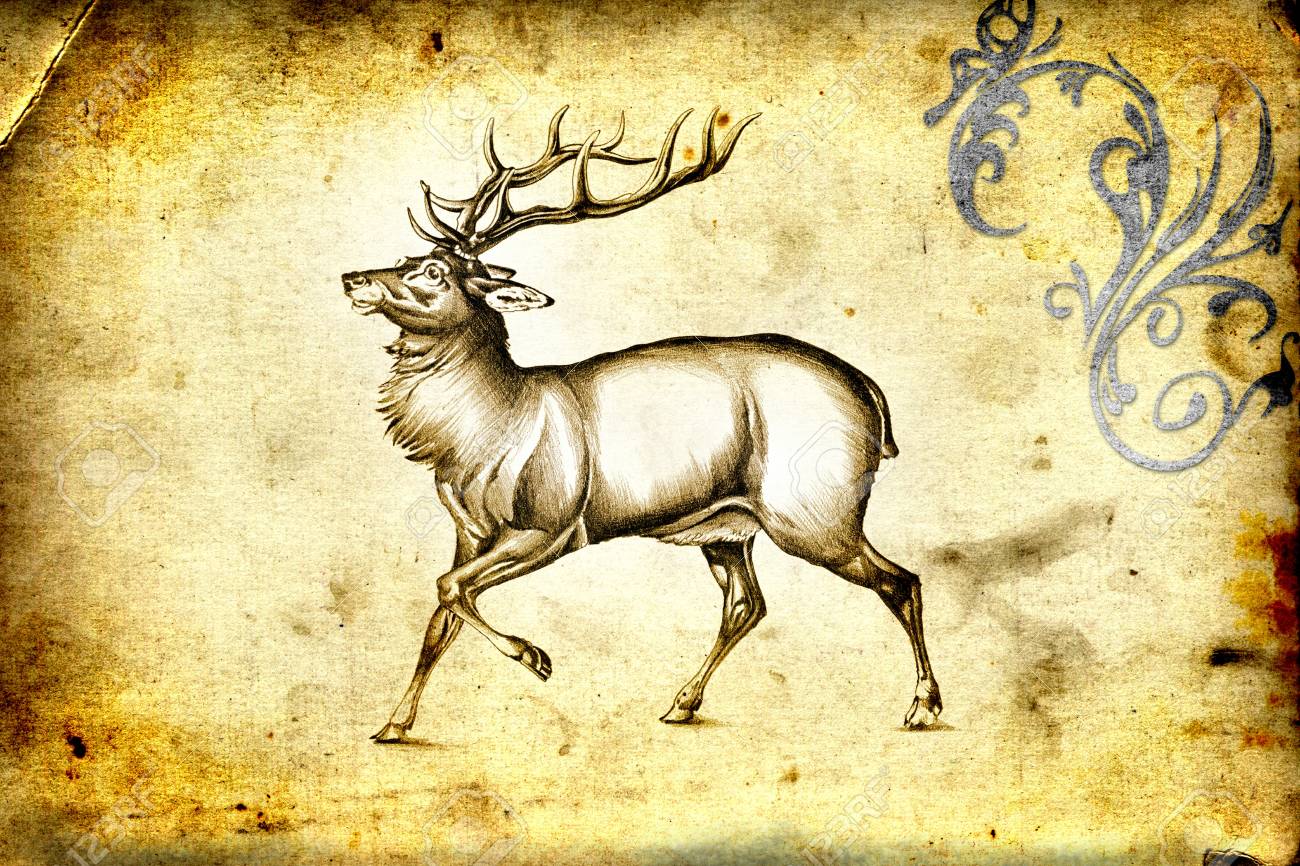 Antique Stag Art Drawing Handmade Nature Stock Photo C Maxtor7777