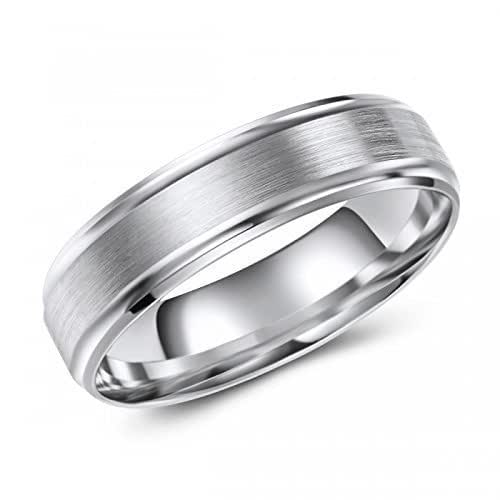 Mens Wedding Band In 14k White Gold 6mm Domed Matte Ring