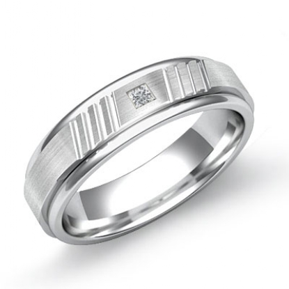 Mens Diamond 14k White Gold Brushed Wedding Ring Matte Wedding Band