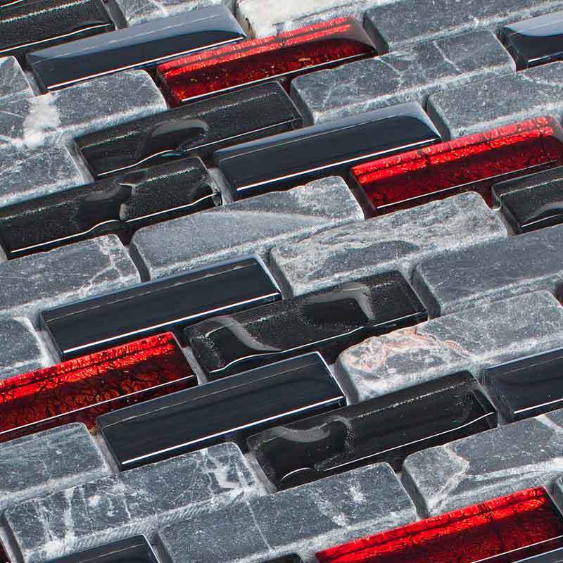 Mosaik Fliesen Matte In Blau Schwarz Und Silber Aus Glas Und Naturstein Texturiert Lava Ziegelstein Effekt Mt0126